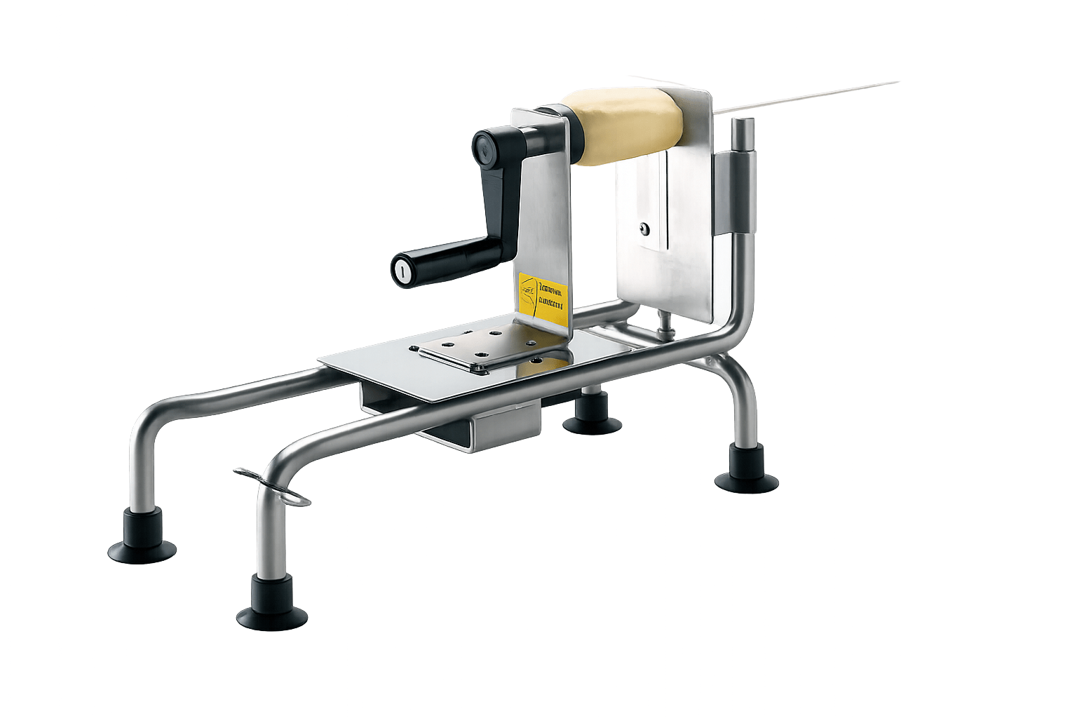 Ierīcei ir fiksēts griezuma biezums – 0,8 mm, kas nodrošina vienmērīgu un precīzu rezultātu. Asmens turētāja korpuss izgatavots no lieta alumīnija, kas garantē izturību un stabilitāti profesionālā lietošanā. Konstrukcija paredzēta drošai darbībai un ērtai lietošanai HoReCa vidē.